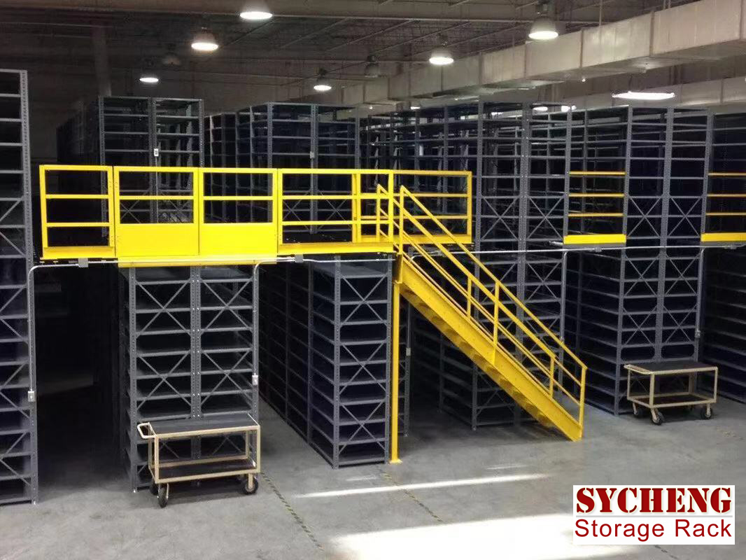 閣樓貨架系統(tǒng),通常利用中型擱板式貨架或重型擱板式貨架作為主體支撐加上樓面板。根據(jù)貨架單元的總負(fù)載重量來決定選用何種貨架,樓面板通常選用冷軋型鋼樓板、花紋鋼樓板或鋼格柵樓板。近幾年多用冷軋型鋼樓板,它具有承載能力強、整體性好、承載均勻性好、精度高、表面平整、易鎖定等優(yōu)勢,有多種類型可選,并且易匹配照明系統(tǒng),存取、管理均較為方便。
