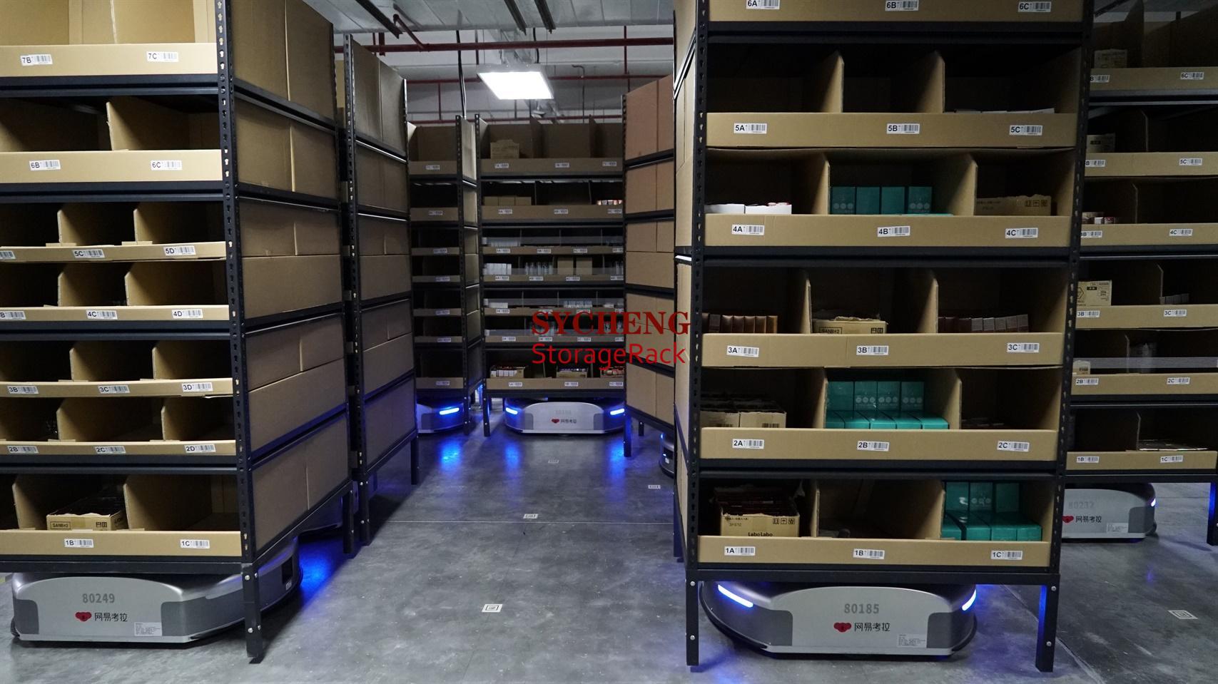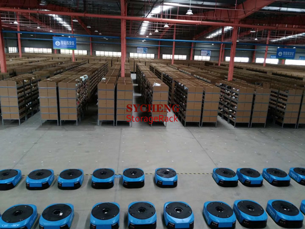 AGV智能倉儲機器人是如何實現(xiàn)“貨到人”揀選的?倉儲系統(tǒng)接受電商平臺傳來的訂單信息,根據(jù)訂單信息給出比較優(yōu)的揀貨方案,然后由AGV系統(tǒng)指派的AGV小車頂起訂單貨品所在貨架自動搬運到操作臺,工作人員根據(jù)訂單信息將貨位的貨品取下。