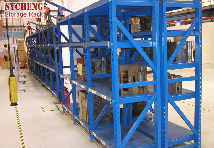 模具架:主要存放各種模具物品,根據(jù)層載能力要求分為輕型模具貨架和 重型模具貨架。貨架頂部可配置移動(dòng)葫蘆車,以方便模具的起吊。尺寸為3100*600*2000, 層載重800KG,抽屜尺寸900*600,層高540、540、500 天車載重500KG。