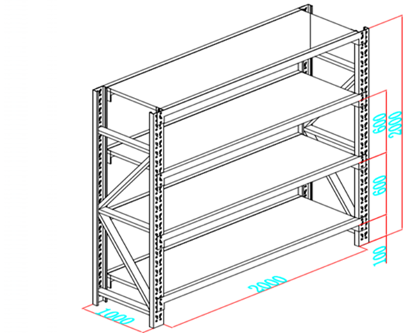上圖是一個(gè)倉(cāng)儲(chǔ)貨架的三維立體設(shè)計(jì)圖,圖中標(biāo)注了貨架長(zhǎng)度為2000mm,由圖中紅色劃線可以看出,該長(zhǎng)度沒(méi)有包含兩邊立柱的規(guī)格,所以長(zhǎng)度2000mm是指該倉(cāng)儲(chǔ)貨架的內(nèi)尺寸、內(nèi)空、內(nèi)徑。一般標(biāo)注該倉(cāng)儲(chǔ)貨架的尺寸時(shí)這樣寫:2000(內(nèi))*1000*2000mm